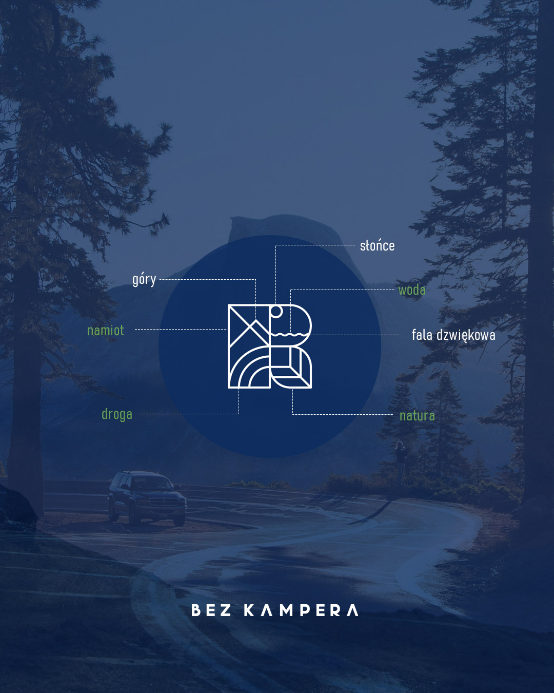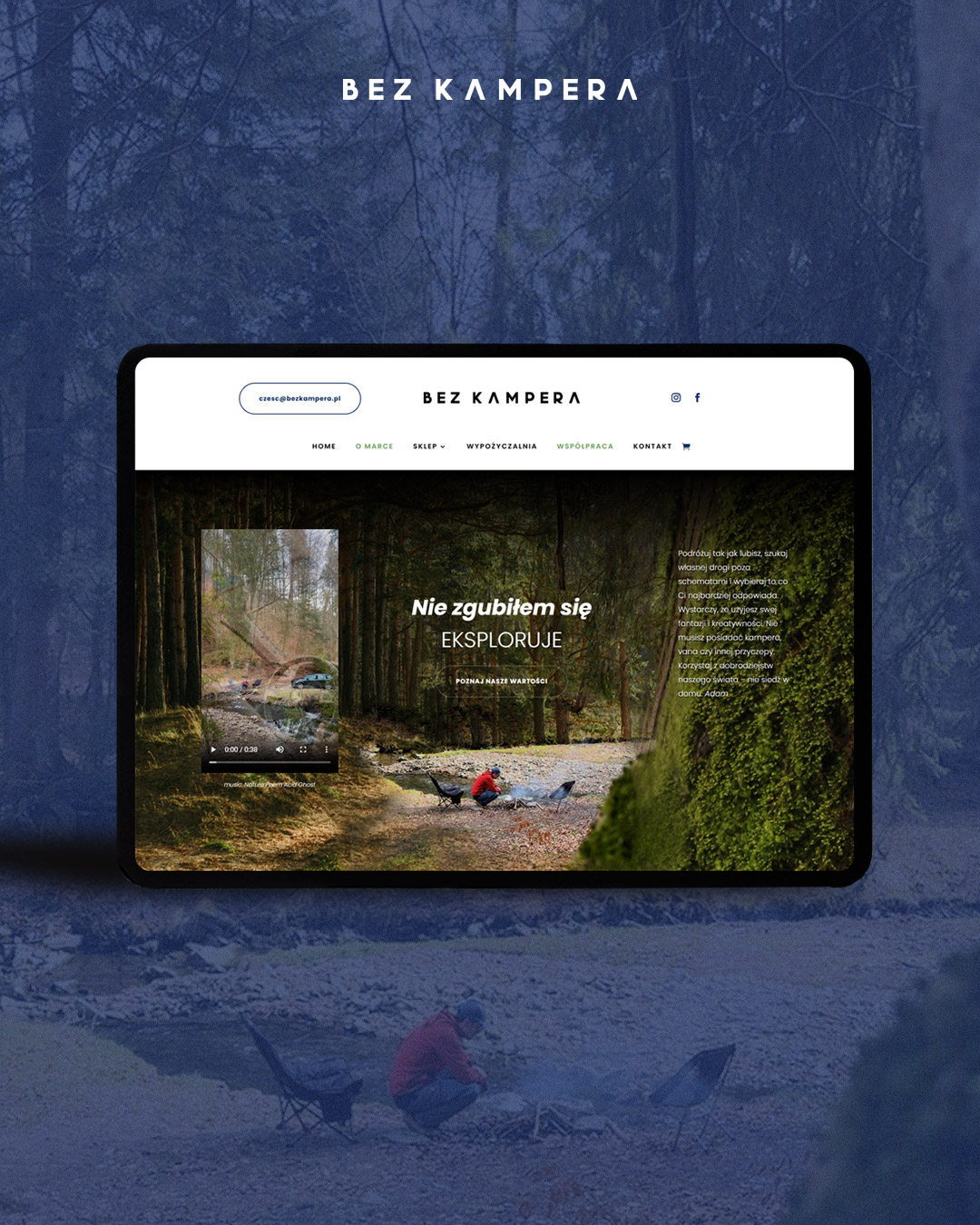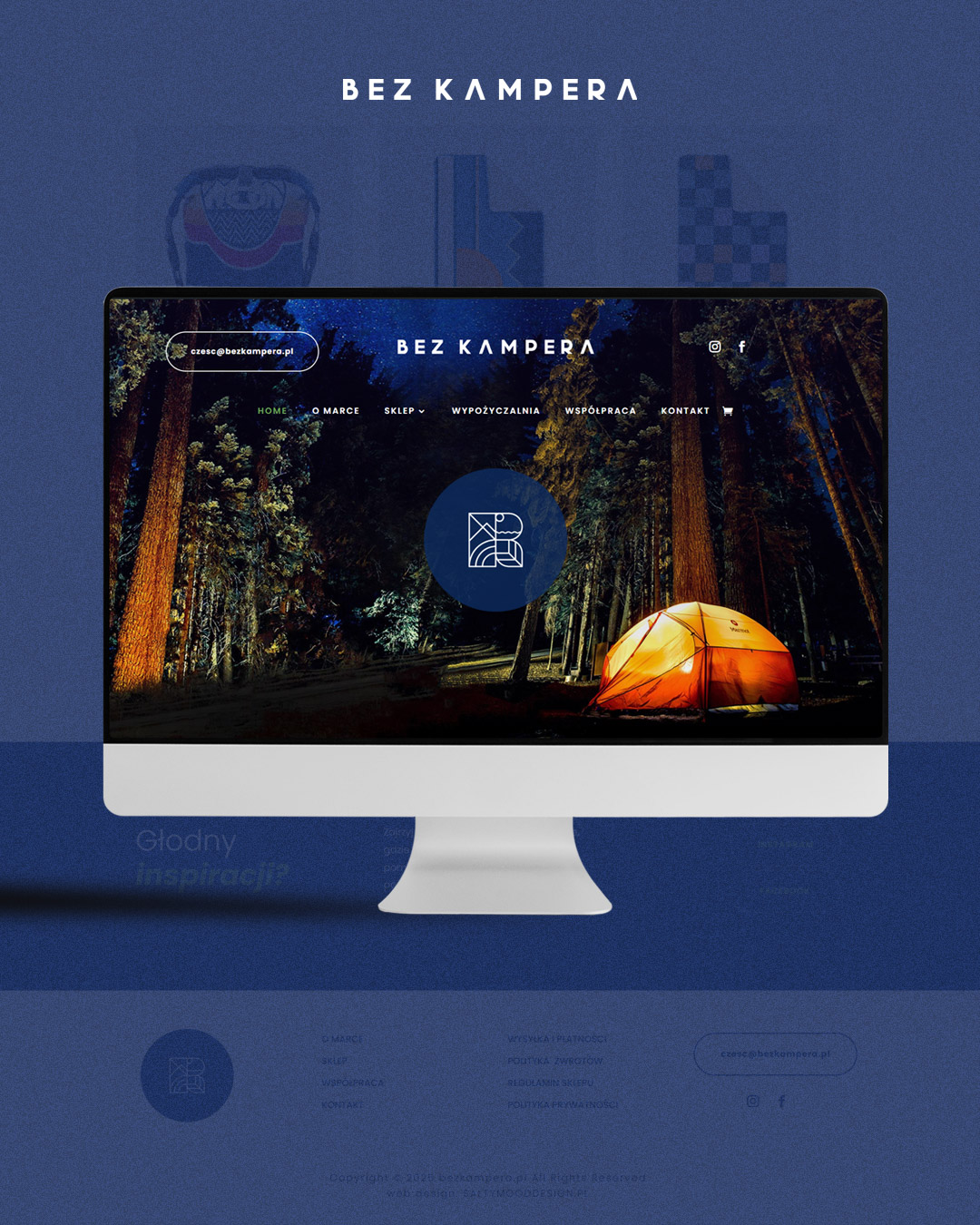 BEZ KAMPERA logo + identity + website created: 2025 client: BEZ KAMPERA www.bezkampera.pl type: logo, website, label, gift card, business card, stickers, accesorries, t-shirt, storytelling, photoshot