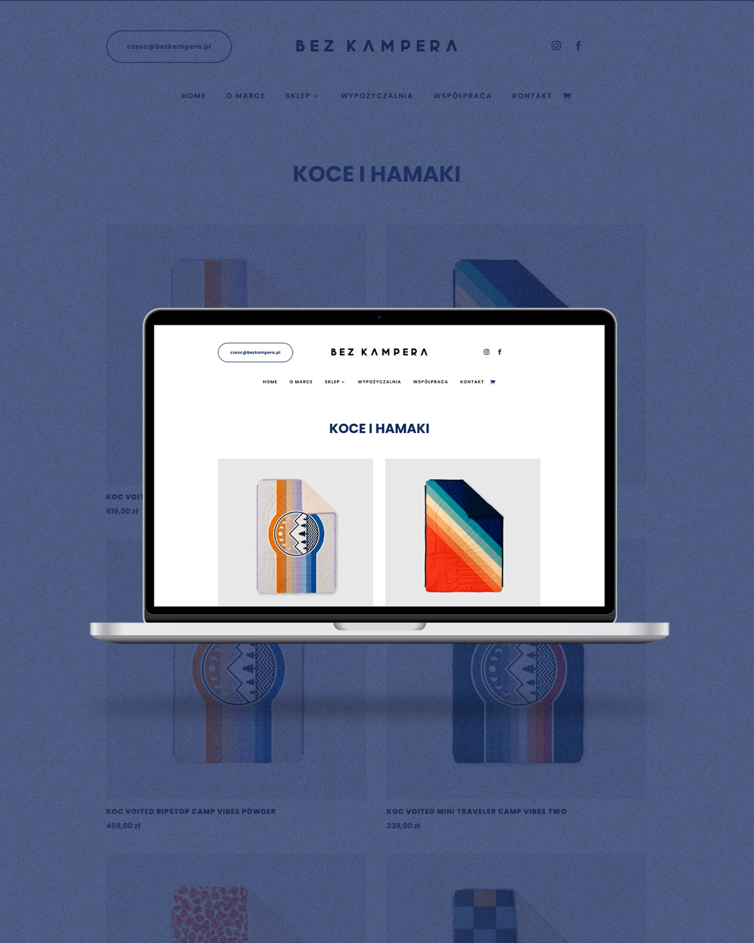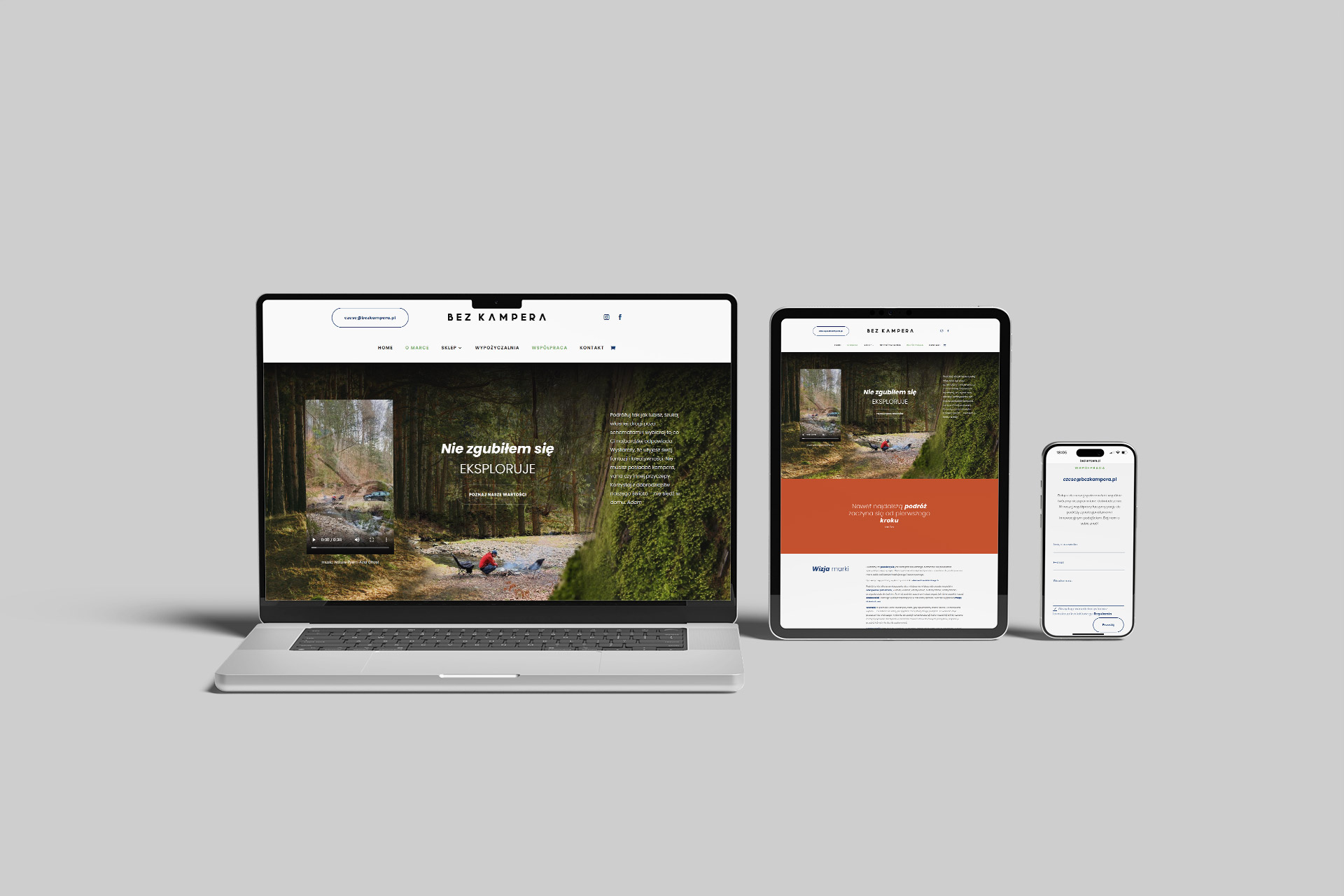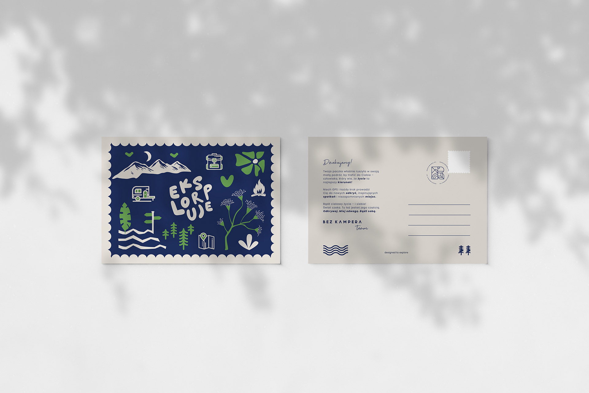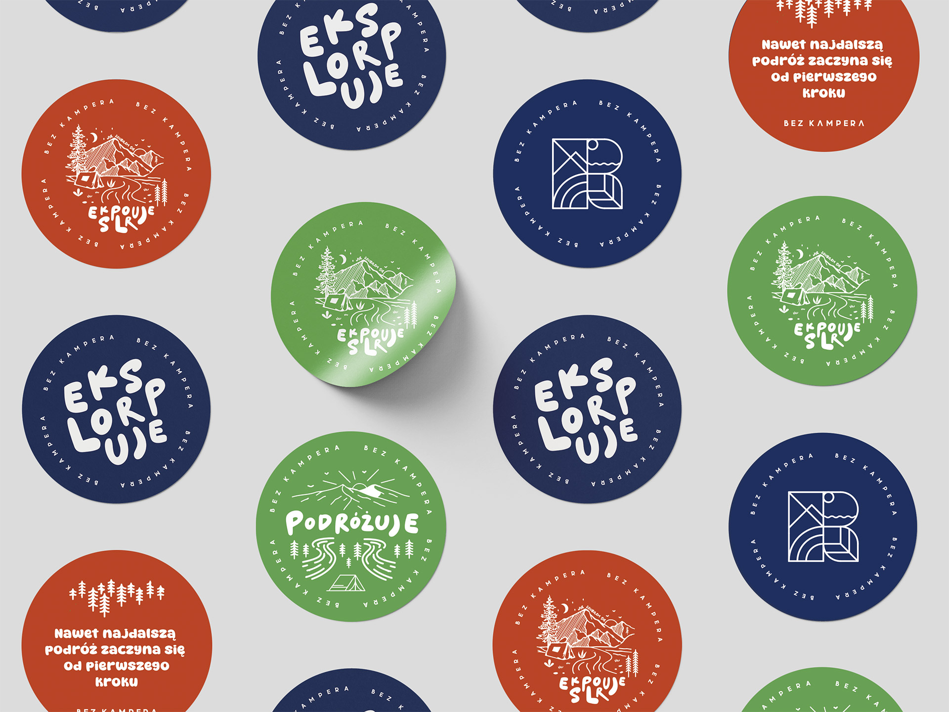 BEZ KAMPERA logo + identity + website created: 2025 client: BEZ KAMPERA www.bezkampera.pl type: logo, website, label, gift card, business card, stickers, accesorries, t-shirt, storytelling, photoshot